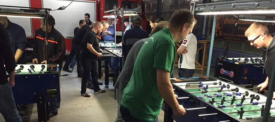 Hitzige Duelle im Feuerwehrstützpunkt Kickerturnier im Feuerwehrstützpunkt Großenlüder stieß auf große Resonanz